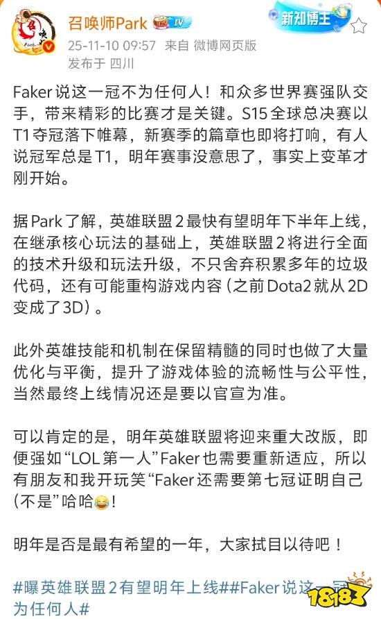 近日,有微博博主“召唤师Park”放出音问,自大《英雄定约》大要真要出正宗续作了!据他所说,《英雄定约2》最快可能在2026年下半年推出,不仅会保留5V5对战等中枢玩法,更将澈底进行技巧重构,罢休积蓄多年的“垃圾代码”,并大幅优化英雄手段与均衡性,让游戏更通顺公谈。