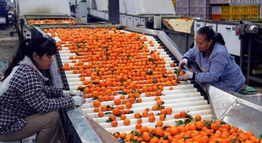 云南省华宁县,选果工东谈主在分拣柑橘。图片开首:新华