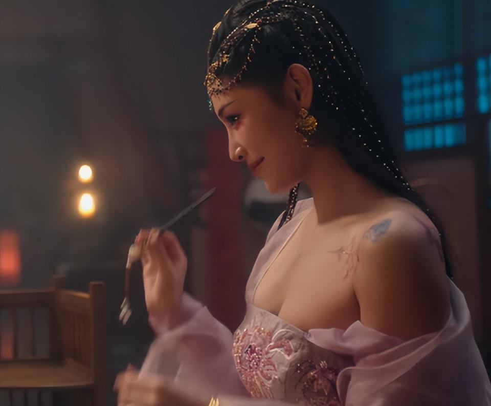 《唐诡 3》中的酒楼舞姬(许佳琪饰)是康国金桃案中被阴阳商东谈主生剥脸皮,制成东谈主皮面具戴在曲家娘子的受害者。