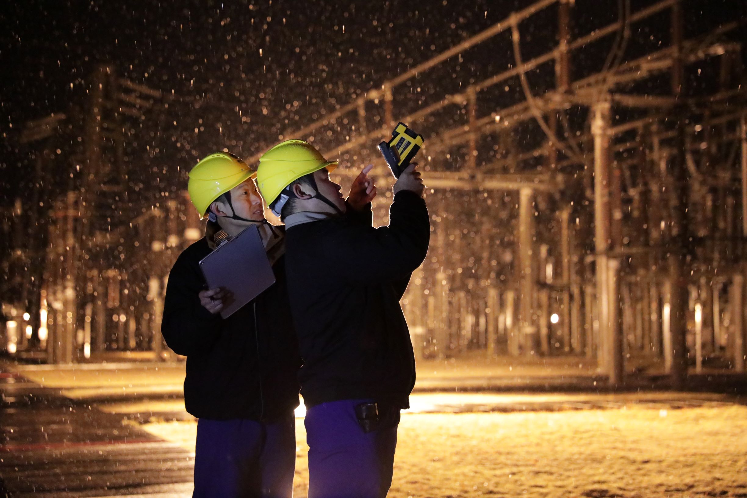 图为超高压运检东谈主员在500千伏兰亭变开伸开拓红外测温。许杨/摄