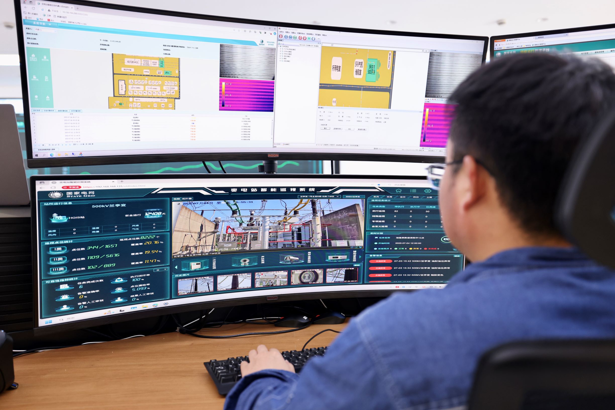图为超高压运检东谈主员对智巡系统平台进行模范化验收。许杨/摄