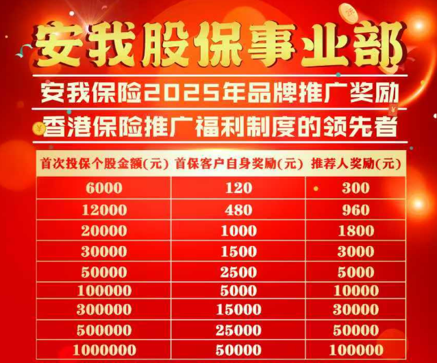 就扩充福利轨制而言,前述推介东谈主员提供的贵寓夸耀,“安我股保”对首保客户和推选东谈主均有奖励。举例,用户初度投保个股金额6000元,平台会奖励首保客户自己120元,奖励推选东谈主300元。依此类推,初度投保用户的个股金额最高可投100万元,平台对应奖励首保客户5万元,奖励推选东谈主10万元。